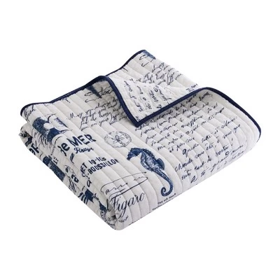 The Beach Life Reversible Quilted Throw by Levtex Home is inspired by a beach educational pamphlet. This intricate nautical design will immediately transform your bedroom. Made with the softest lightweight cotton, this reversible throw features a navy and white nautical design, reversing to a the same pattern on the other. The Quilted Throw is perfectly sized at 50x60in. and is machine washable. Enjoy this for years to come!