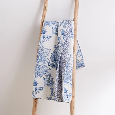 The Bennett Reversible Quilted Throw by Levtex Home is inspired by vintage handpainted ceramics. This floral quilt design will immediately transform your bedroom. Made with the softest lightweight cotton, this reversible throw features blue watercolor paisley flowers on a soft white ground, reversing to a mini blue medallions on white on the other. The Quilted Throw is perfectly sized at 50x60in. and is machine washable. Enjoy this for years to come!