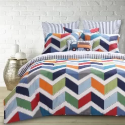- COORDINATE YOUR ROOM DECOR: Create a wonderful bedroom space with our coordinated Duvet Cover Set. The bright chevron design brings fun multicolor accents into your home and will match a variety of different looks and bedroom decor. You can also freshen your room with matching other items from the Levtex Home collection.