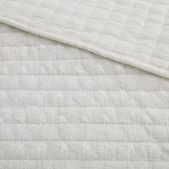 - COORDINATE YOUR ROOM DECOR: Create a wonderful space with this quilted throw. The cream design brings elegant, romantic accents into your home and will match a variety of different looks. You can also freshen your room with other items from the Eyelet Cream collection.