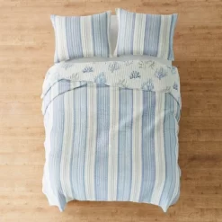 - COORDINATE YOUR ROOM DECOR: Create a wonderful bedroom space with our coordinated reversible matching bed set. The striped coastal design brings breezy, beachy accents into your home and will match a variety of different looks and bedroom decor. You can also freshen your room with coordinating shower curtain and throws from the Levtex Home collection.