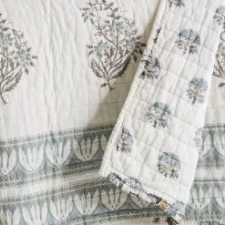 The Kamira Reversible Throw by Levtex Home is inspired by summer country gardens. Offered in different colors, this design will immediately transform any room in your home. This throw features a unique flower with a distinctive bottom border on the front, reversing to a miniature flower bush and cream ground on the back. The Throw (50x60in.) has a cotton front and back, filled with a cotton-rich filler, and is machine washable. Enjoy this for years to come!