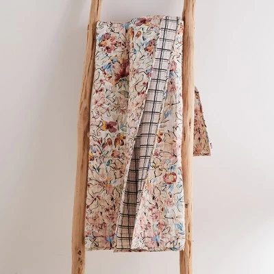 The Leonora Reversible Quilted Throw by Levtex Home is inspired by beautiful vintage garden flowers. This traditional floral design will immediately transform your bedroom. Made with the softest lightweight cotton, this reversible throw features a pink flowers with blue and yellow accents, reversing to a black and dusty pink squares on the other. The Quilted Throw is perfectly sized at 50x60in. and is machine washable. Enjoy this for years to come!