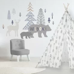 - ADORABLE WILDERNESS LODGE THEME: You will think you are a fun mountain adventure with an array of wildlife of deer, bears and moose with our adorable wilderness wildlife look. This beautiful wall decal completes your Levtex Baby Logan baby’s room.