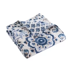 The Lorrance Reversible Throw by Levtex Home is inspired by beautiful floral gardens. Offered in blue, navy, taupe and white, this design will immediately transform any room in your home. This throw features a rich collection of medallions and flowers on the front, reversing to a small leaf pattern in navy on white on the back. The Throw (50x60in.) has a cotton front and cotton back, filled with a cotton-rich filler, and is machine washable. Enjoy this for years to come!