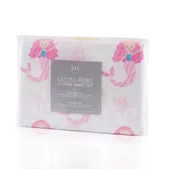 The Marina Kids Sheet Set by Levtex Home is inspired by bedtime stories of mermaids. Offered in pink, blue, gold, and white, this design will immediately transform your kid’s bedroom. The design features a tossed pattern of colorful mermaids, seahorses, fish and coral on a white ground. The set includes a Twin fitted sheet (39×75), a top sheet (66x96in.), and a matching pillow case (21x30in.). Your kid will surely enjoy this for years to come!