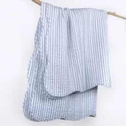 - COORDINATE YOUR ROOM DECOR: Create a wonderful space with this quilted throw. The blue and white design brings sophisticated, classic accents into your home and will match a variety of different looks. You can also freshen your room with other items from the Martha Stripe collection.