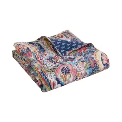 The Nanette Reversible Quilted Throw by Levtex Home is inspired by ornate tapestries. This vibrant paisley design will immediately transform your bedroom. Made with the softest lightweight cotton, this reversible throw features a rich melange of floral paisley patterns at play , reversing to a navy and blue leaf pattern on the other. The Quilted Throw is perfectly sized at 50x60in. and is machine washable. Enjoy this for years to come!