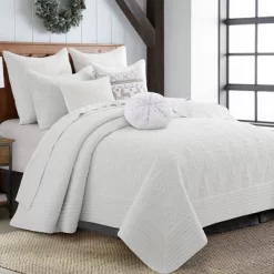 The Snowflake decorative pillow matches perfectly with the Levtex Home O Christmas Tree bedding collection. This pillow is sized at 16in. Round and features a great snowklake embroidered in silver stitch onto a white soft plush The white and silver color palette makes this a versatile accessory for your bed, couch or favorite chair. The pillow comes pre-filled with a soft, luxurious feather inner.