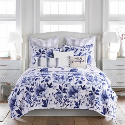 - COORDINATE YOUR HOME: Create a wonderful space with our coordinated Riella Garden Collection. The blue, navy and beige design brings bright embroidery accents into your home and will match a variety of different looks. You can also freshen your room with complementary quilt sets, euro shams and throw from the Levtex Home collection.