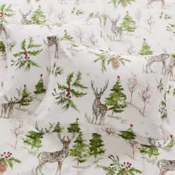 - THE SLEIGH BELLS DESIGN: One of our most popular sets, Sleigh Bells is a calming holiday feeling. The front is a deer, Christmas trees and holly in black and greys on a white ground and the reverse is red and white plaid. Button closures at the bottom of the duvet cover are durable and easy to use.