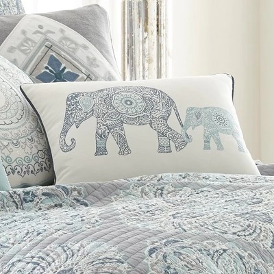 - LEVTEX TANIA COLLECTION: The Printed Elephants decorative pillow complements the Tania bedding collection. Use it to accessorize your bed, or on your living room couch or favorite chair. This pillow features gorgeously detailed, printed elephants on a white canvas ground.