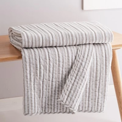 - LEVTEX TOBAGO STRIPE TAUPE QUILTED THROW: This quilted throw is made from a classic ticking stripe pattern. Perfectly sized at 50x60in., the Tobago Stripe Taupe throw is so versatile. Drape it at the end of your bed or on your favorite, cozy chair; snuggle up with it in front of a fire in winter; or throw it over you just as the sun goes down as you enjoy a cool Spring or Summer evening outdoors.