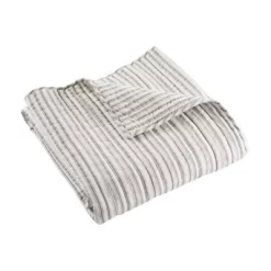 The Tobago Stripe Taupe Reversible Quilted Throw by Levtex Home is inspired by nautical stripes. This classic stripe design will immediately transform your bedroom. Made with the softest lightweight cotton, this reversible throw features taupe pin stripes on white, reversing to a classic taupe and white pin stripe on the other. The Quilted Throw is perfectly sized at 50x60in. and is machine washable. Enjoy this for years to come!