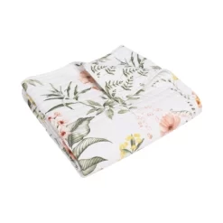 The Viviana Reversible Quilted Throw by Levtex Home is inspired by traditional botanical renderings, watercolors and sketches. Offered in shades of coral, green and yellow on cream, this design will immediately transform your bedroom. Made with the softest lightweight cotton, this throw features a classic botanical floral print on the one side, reversing to a soft leaf pattern on the other. The Quilted Throw is machine washable and is sized at 50x60in. Enjoy this for years to come!