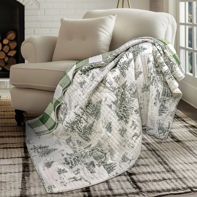 - THE WINTER SLEIGH RIDE DESIGN: Inspired by classic holiday toile prints, this throw features detailed scenes of sleighs, barns, deer, and snowy pine trees. The reverse side displays a coordinating plaid for a warm, rustic touch.